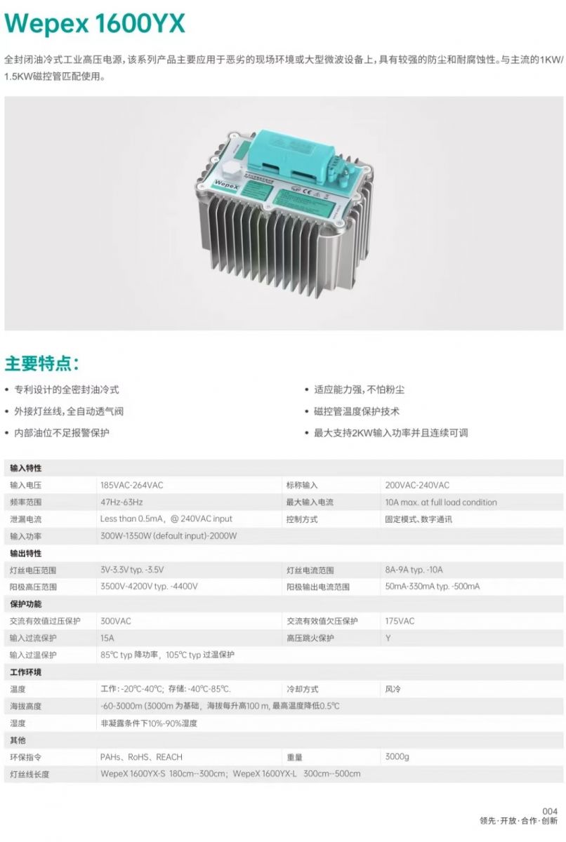 油冷微波電源 型號Wepex 1600YX